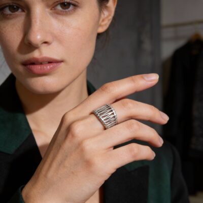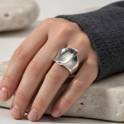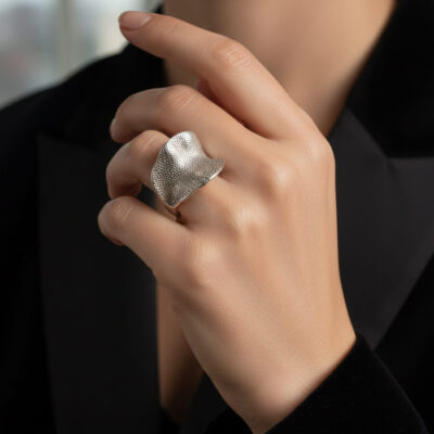 20,00 €Σφυρήλατο δαχτυλίδι από ανοξείδωτο ατσάλι ασημί. Διαστάσεις 1,8 εκ x 2,8 εκ, χωρίς δυνατότητα αυξομείωσης.