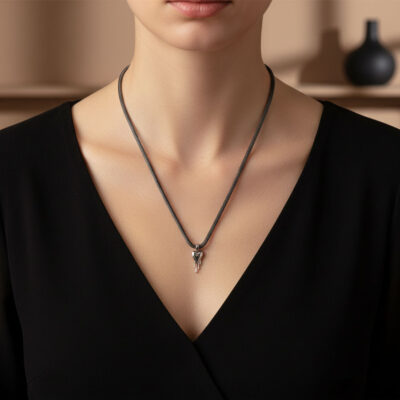 20,00 €Κολιέ με αλυσίδα snake ατσάλινη σε μαύρο χρώμα,με κεντρικό στοιχείο ατσάλινη melted heart,σε χρώμα ασημι. Διαστάσεις 10 εκ χωρίς τη δυνατότητα αυξομείωσης. -