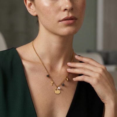 29,00 €Κολιέ από ανοξείδωτο ατσάλι χρυσό, με ατσάλινα charms, κρύσταλλα και μαργαριτάρι γλυκού νερού. Διαστάσεις 51 εκ + 5 εκ επέκταση.