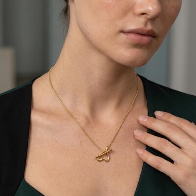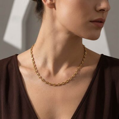 21,00 €Κολιέ από ανοξείδωτο ατσάλι, χρυσό χρώμα. Διαστάσεις 45 εκ με αλυσίδα αυξομείωσης 5 εκ. -